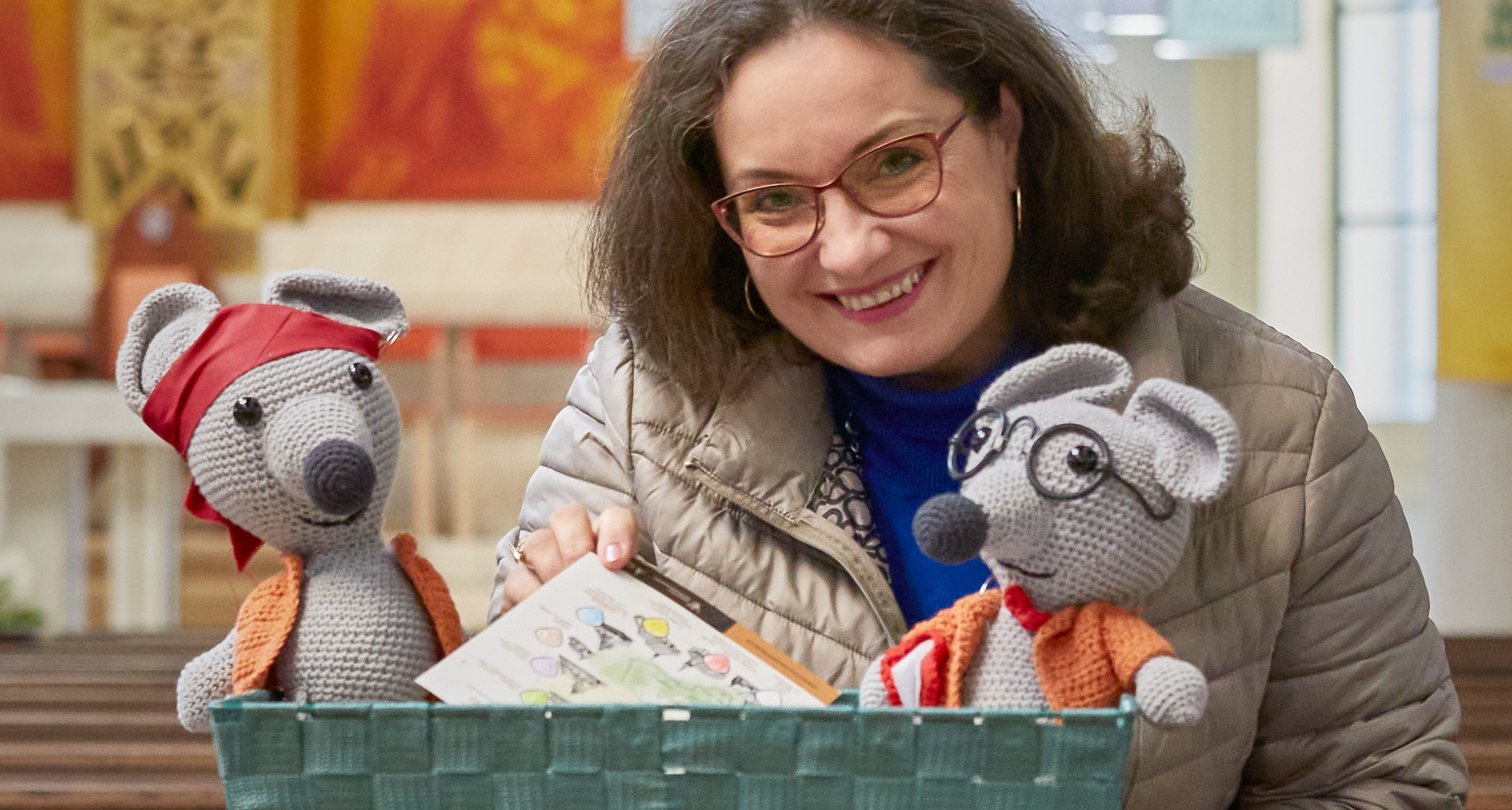 Zde se setkali s paní Petrou Košákovou, koordinátorkou vzdělávacích a kulturních aktivit v katedrále, která jim ukázala velký zelený košík, kde byly všechny odevzdané kartičky od poutníku, na které pečlivě zaznamenávali náplň koláče, který měli myši ke svačince u jednotlivých kostelů. Za odevzdanou kartičku každý účastník dostal buttonek s portrétem myšáka.